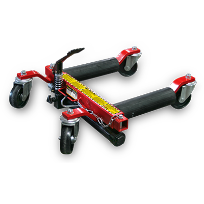 These heavy-duty car dollies feature a quick-action hydraulic foot pump to lift any car or light truck in seconds, providing instant mobility in any direction. A multi-position locking pin secures the load after the unit is raised to the required height. Reinforced, non-skid brushed aluminium rollers ensure a solid and stable tyre support, and a low centre of gravity makes them safe and stable during use.